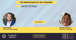 LMK Webinars TMF Career Week: Day 1 Developing TMF Soft Skills August 29, 2024 Enhancing TMF Foundations with LMK Consulting June 7, 2024 Introducing TMFU Accelerate: Turbocharge Your TMF Expertise in Just Four Hours! June 4, 2024 Breaking Silos: Enhancing Cross-Functional Collaboration in TMF Management January 30, 2024 TMF University: Town Hall December 5, 2023 TMF University: Your Schedule, Your Choice October 2, 2023 Empowering Your Team for Successful Clinical Trial Management August 30, 2023 5 Skills for Cultivating a Culture of Excellence in TMF Management July 24, 2023 The Roadmap to Success through TMF Training July 5, 2023 TMF University Town Hall: June 23′ June 15, 2023 « Previous 1 2 3 4 5 6 Next » To receive updates when new webinars are posted, please contact us.